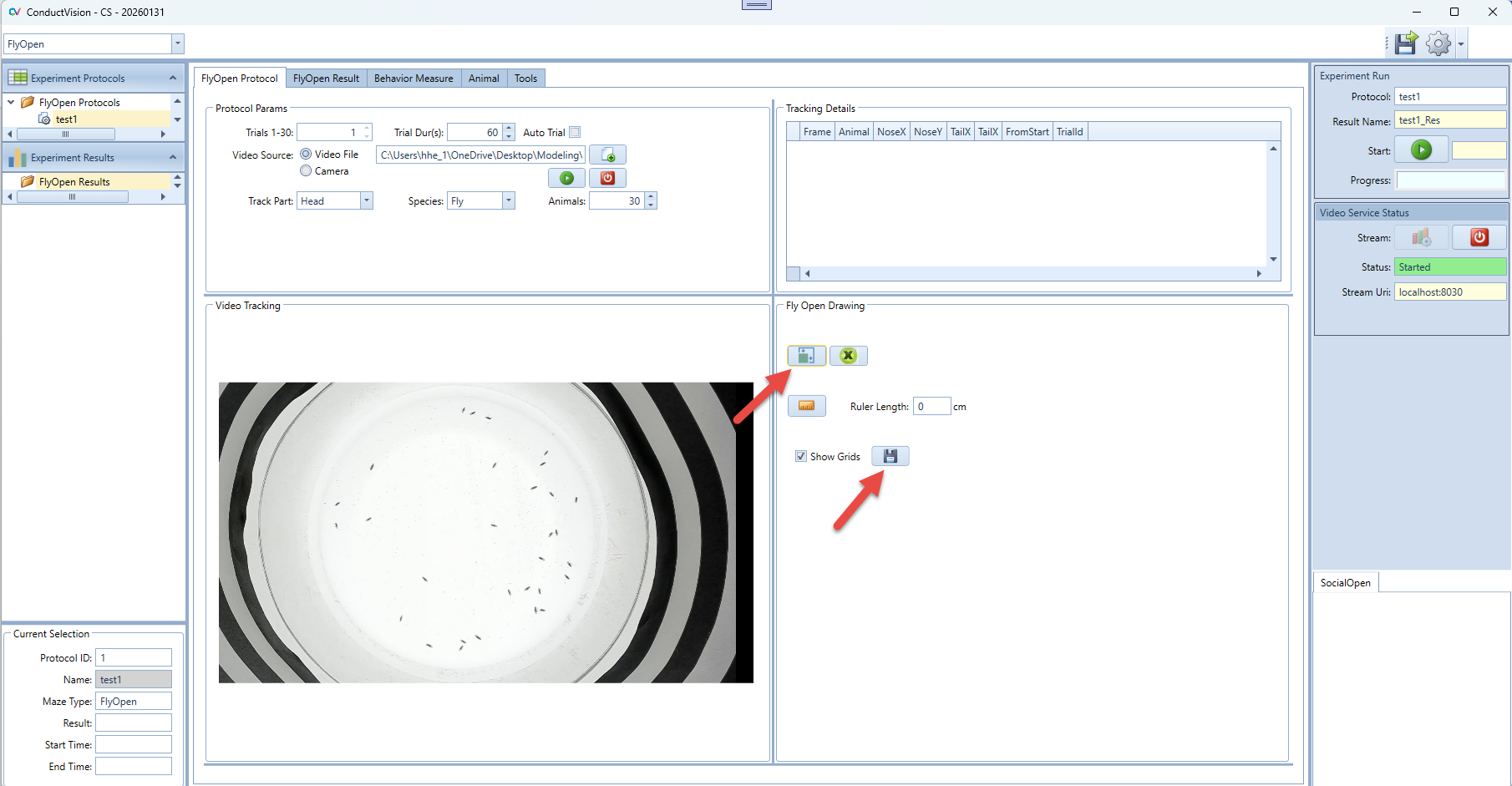 - Trials (1-30) - represents the number of trials to continuously run in the session. The trial is set to 1 for a FlyOpen single video or single camera. Multiple trials will be used for the batch processing of videos, each trial representing a video.