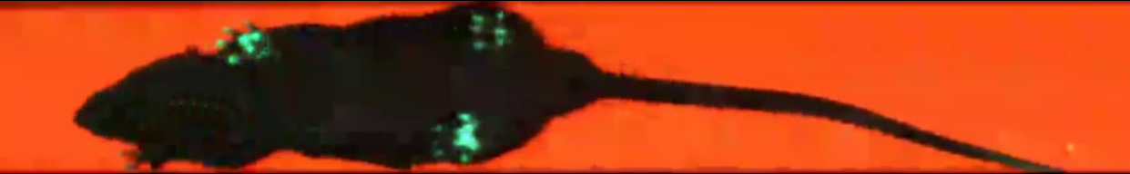 - When the paw touches the glass, light is scattered at the contact point (due to pressure breaking total internal reflection). This produces green illuminated paw prints in the video. These represent stance phase