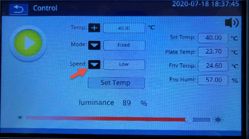 - Speed is a combo field of Steady-High-Low, indicating the temperature acceleration rate. For example, High indicates plate is heated in the high speed.
