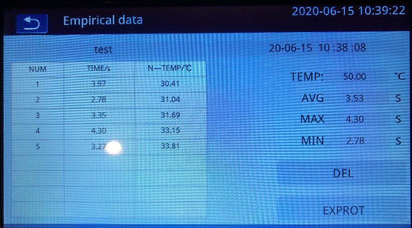 Press the data group and the data set details are shown. Press Export to export the data to USB drive (make sure you insert the USB drive).