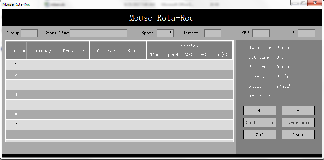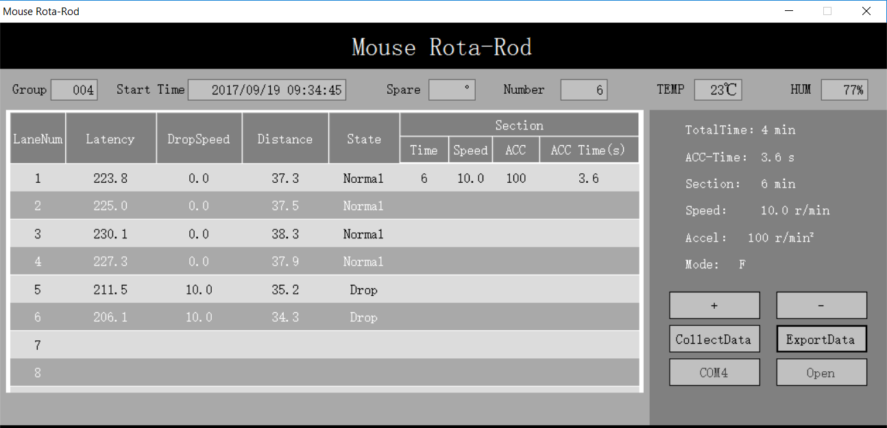 Click on Collect Data, and wait for a few seconds. The experiment results stored on the RotaRod will be uploaded to the software on PC.